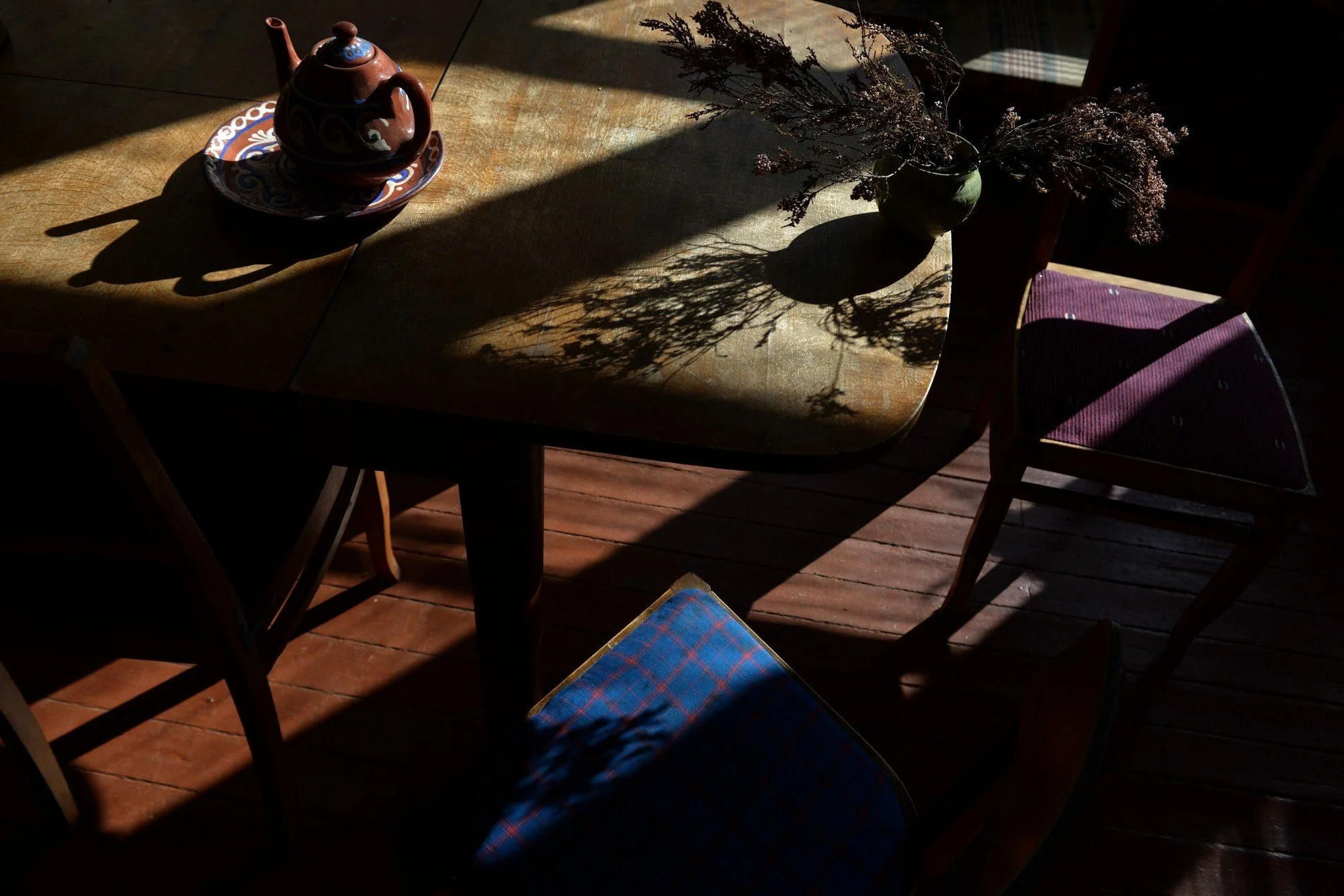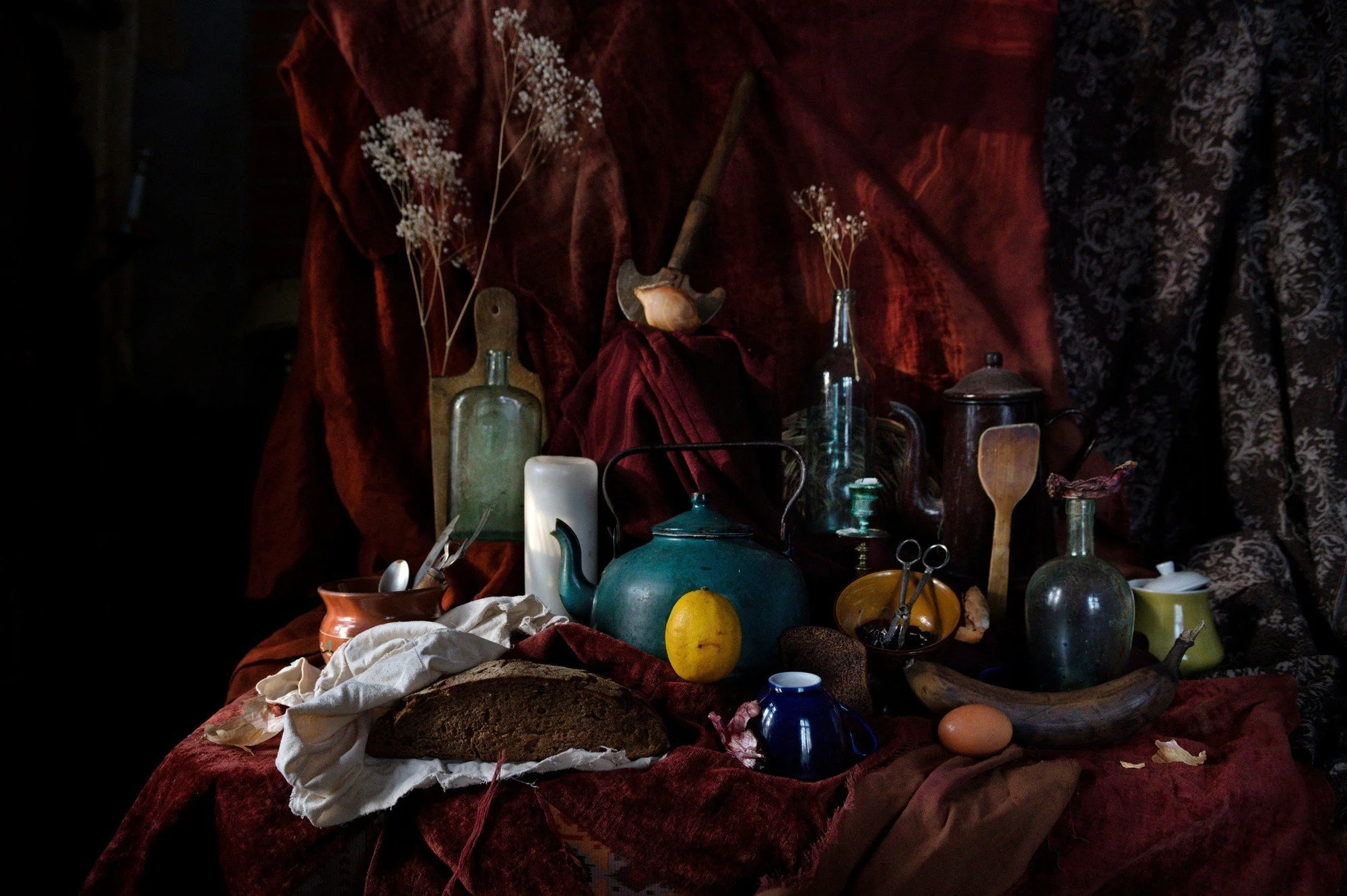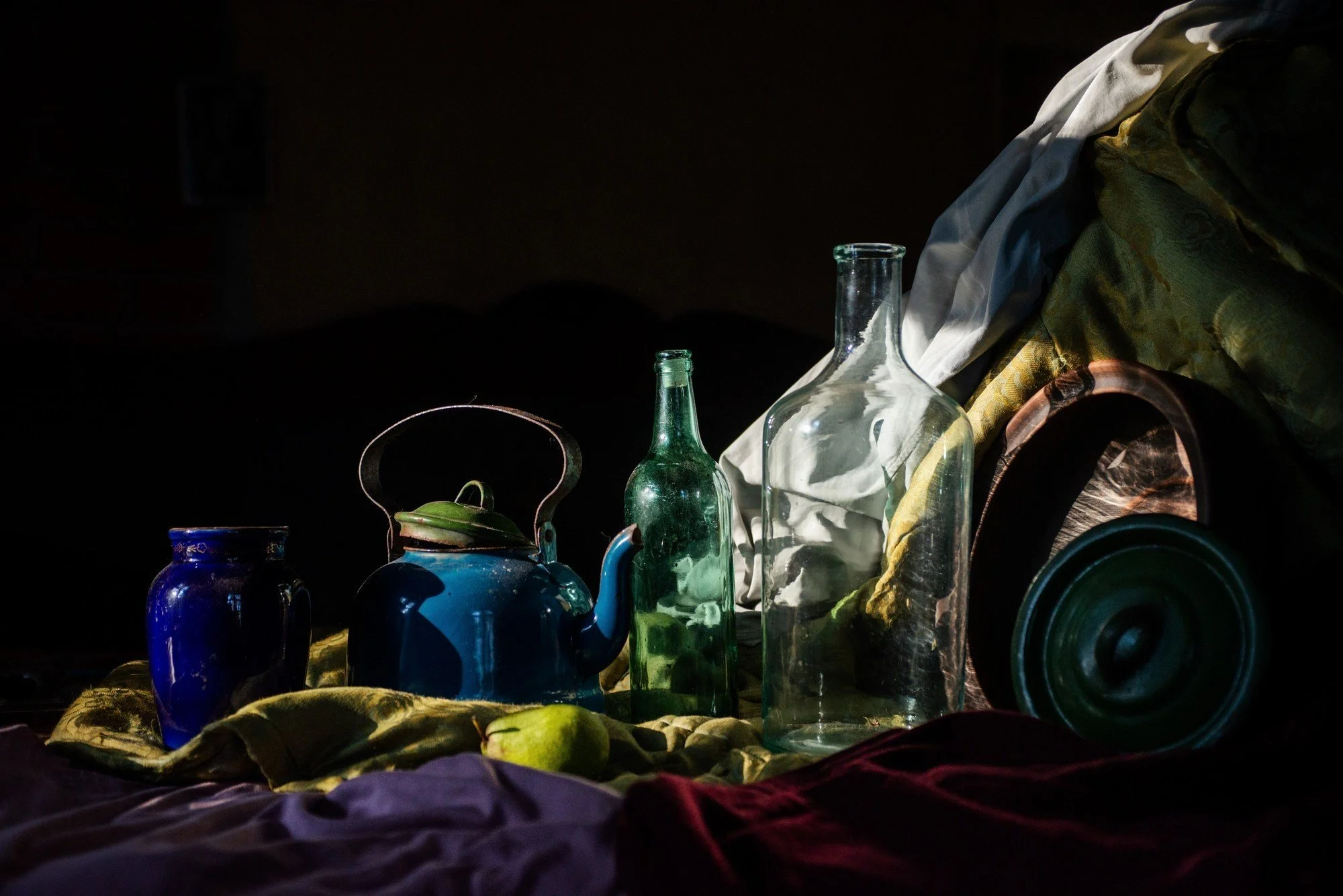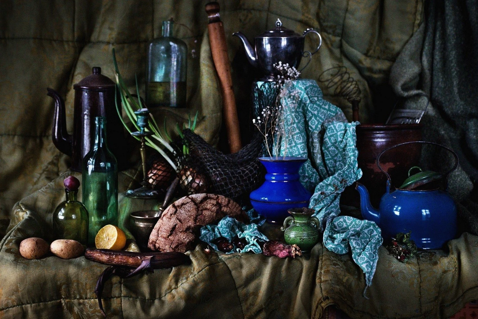Coffeepots and teapots, vases and small figurines, old clothes and more. All these objects are filled with the elegance of forms, the beauty of lines, the subtlety of reflections, and the variety of shades. Although my grandmother is gone a long time ago, all her costumes and outfits are still hang in her room on the second floor in the closet with blue curtains. Many of them were already worn out, and some were even worn by my great-grandmother and her sister. But for me, they contain not only the memory of my grandmother and love to her, but I also see beauty in them. This beauty was created long before my birth and then during all my life was invisibly present around everything that I did. Using all this to create still lives I strive to convey a sense of the integrity of this house and not break even the smallest connections so long and carefully built by its inhabitants.